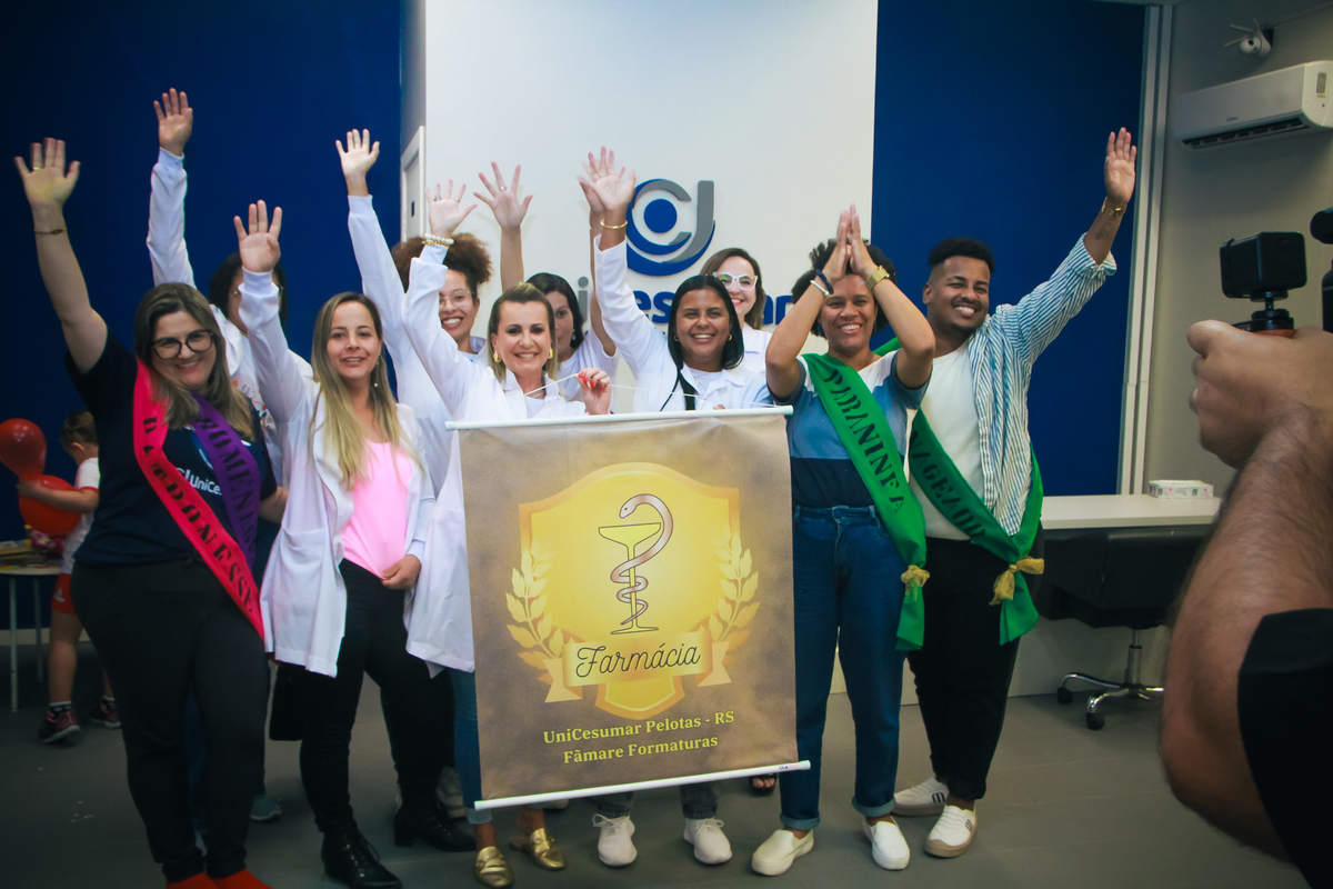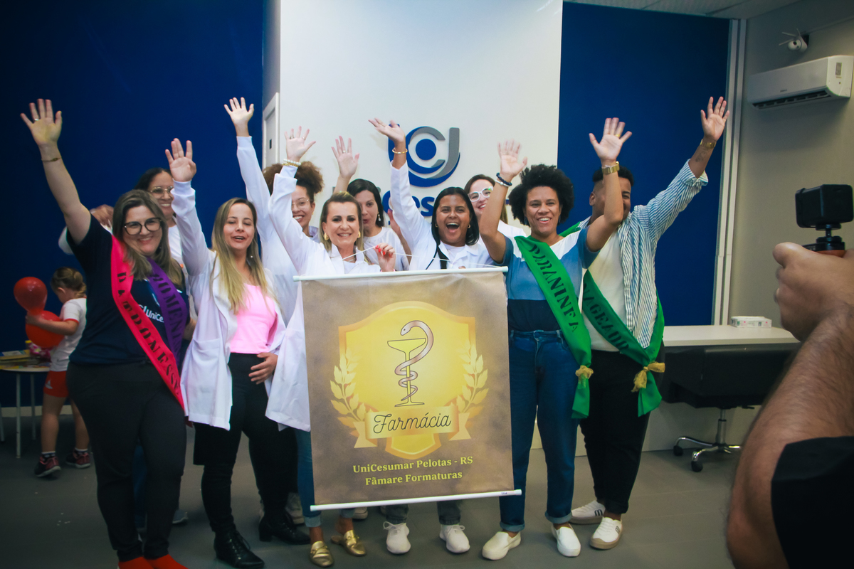 Festa de entrega de faixas aos homenageados da turma de Farmácia 2026 Unicesumar Pelotas RS